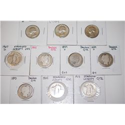 1893 Barber Quarter; G4, 1899-O Barber Quarter; G03, 1899-O Barber Quarter; G4, 1905 Barber Quarter, 1917, 1925, 1927-D Standing Liberty Quarter, 1962