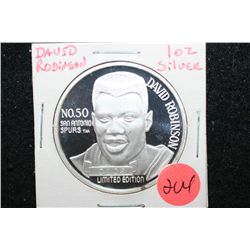 1995 NBA Limited Edition Silver Round; .999 Fine Silver 1 Oz.; Most Valuable Player David Robinson #50 San Antonio Spurs