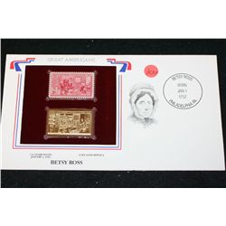 22K Gold Replica Stamp W/Postal Stamp Issued 1952; Betsy Ross-Great Americans