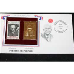 22K Gold Replica Stamp W/Postal Stamp Issued 1969; Dwight Eisenhower-Great Americans