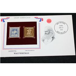 22K Gold Replica Stamp W/Postal Stamp Issued 1940; Walt Whitman-Great Americans