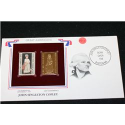 22K Gold Replica Stamp W/Postal Stamp Issued 1965; John Singleton Copley-Great Americans