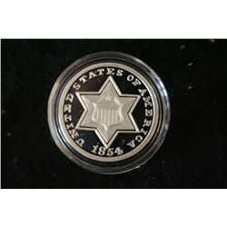 1854 Three Cent Piece COPY; .999 Fine Silver .380 Oz.