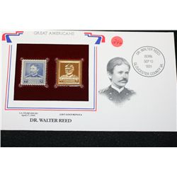 22K Gold Replica Stamp W/Postal Stamp Issued 1940; Dr. Walter Reed-Great Americans