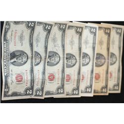 1953 & 1953-C United States Note $2; Red Seal; Low Grade; Lot of 8