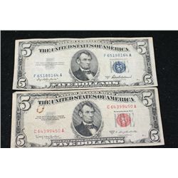 1953-A & 1953-C United States Note $5; Red Seal; Lot of 2