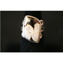 Sterling Silver Ring W/Marbled Gemstone; .925 Silver