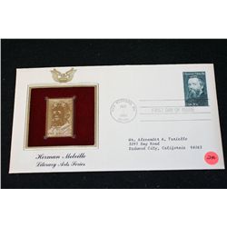 1984 First Day of Issue 22K Gold Replica Stamp W/Postal Stamp; Herman Melville Literary Arts Series