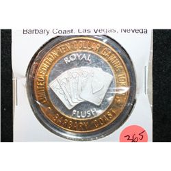 Barbary Coast Las Vegas NV "Royal Flush" Limited Edition Two-Tone $10 Gaming Token; .999 Fine Silver .60% Oz. ASW