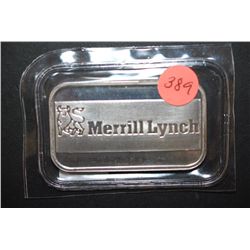 Merrill Lynch Commemorative Silver Ingot; .999 Fine Silver 1 Oz.; EST. $35-45