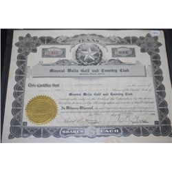 Mineral Wells Golf And Country Club Stock Certificate Dated 1944; EST. $20-30