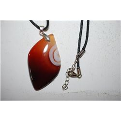 Black Leather Necklace With Multi-Colored Stone Charm; EST. $10-20