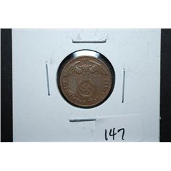 1937-A German 1 Reichspfennig Foreign Coin With Flying Eagle Holding Swatstika; EST. $10-15147 - 1937-A German 1 Reichspfennig Foreign Coin With Flying Eagle Holding Swatstika; EST. $10-15