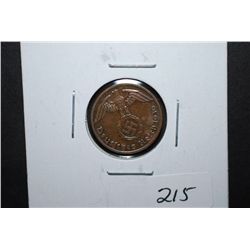 1939-A German 1 Reichspfennig Foreign Coin With Flying Eagle Holding Swatstika; EST. $10-15215 - 1939-A German 1 Reichspfennig Foreign Coin With Flying Eagle Holding Swatstika; EST. $10-15