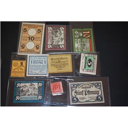 German Notgelds Foreign Bank Notes; Various Dates, Denominations & Conditions; Lot of 10; EST. $25-35