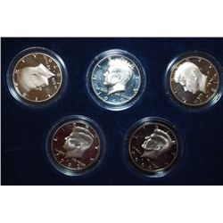 US Silver Proof Kennedy Half Dollars In Display Case; 1964, 1969-S, 1970-S, 1968-S & 1976-S; Lot of 5 Coins; EST. $25-30