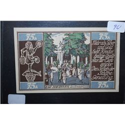 1921 German 75 Pfennig Foreign Bank Note; EST. $5-10