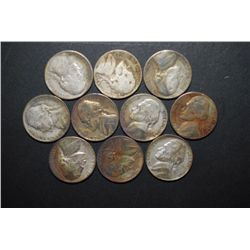 Jefferson Silver Wartime Nickels; Various Dates & Conditions; Lot of 10; EST. $20-30