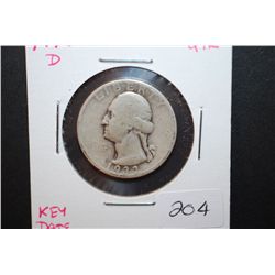 1932-D US Washington Quarter; Key Date; EST. $60-70