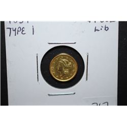1851 US Liberty $1 Gold Coin Type I; EST. $150-200