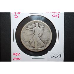1916-D US Walking Liberty Half Dollar; Obv. MM; EST. $30-40223 - 1916-D US Walking Liberty Half Dollar; Obv. MM; EST. $30-40