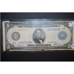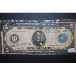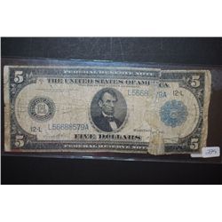 1914 US Federal Reserve Note $5; Blue Seal; Dallas TX Reserve; EST. $50-60