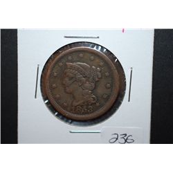 1853 US Large One Cent; EST. $20-30236 - 1853 US Large One Cent; EST. $20-30