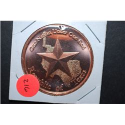 2010 Republic Of Texas Copper Round; .999 Fine Copper 1 Oz.; Battle Of San Jacinto-One Nation Under