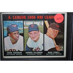 1966 MLB American League RBI Leaders Baseball Trading Card; Frank Robinson Baltimore Orioles, Harmon Killebrew Minnesota Twins & Boog Powell Bal...