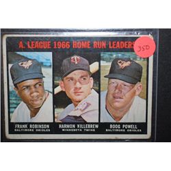 1966 MLB American League Home Run Leaders Baseball Trading Card; Frank Robinson Baltimore Orioles, Harmon Killebrew Minnesota Twins & Boog Powe...