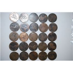 Great Britain One Penny; Various Dates & Conditions; Lot of 25; EST. $10-20