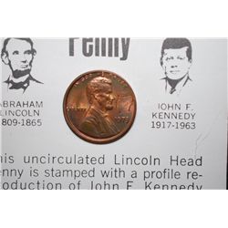 1973 Lincoln Penny With Profile Of Kennedy Printed On Obv. & History; EST. $5-10