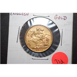 1901 Great Britain Souv Gold Foreign Coin; EST. $400-450
