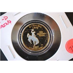 2007-D Wyoming State Quarter; CLAD Gold With Holographic Image; EST. $1-3