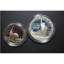 1986-S US Liberty Commemorative Two-Coin Proof Set In Velvet Box; Ellis Island $1 Silver & Nation Of Immigrant Half Dollar; EST. 40-50