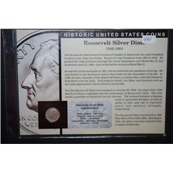 Historic United States Coins With COA Included & History; 1963 Roosevelt Silver Dime; .900 Silver 2