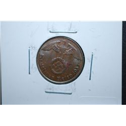 1937-A German 2 Reichspfennig Foreign Coin With Flying Eagle Holding Swatstika; EST. $5-15