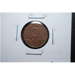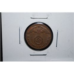 1939-F German 1 Reichspfennig Foreign Coin With Flying Eagle Holding Swatstika; EST. $5-15