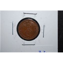 1937-F German 1 Reichspfennig Foreign Coin With Flying Eagle Holding Swatstika; EST. $5-15
