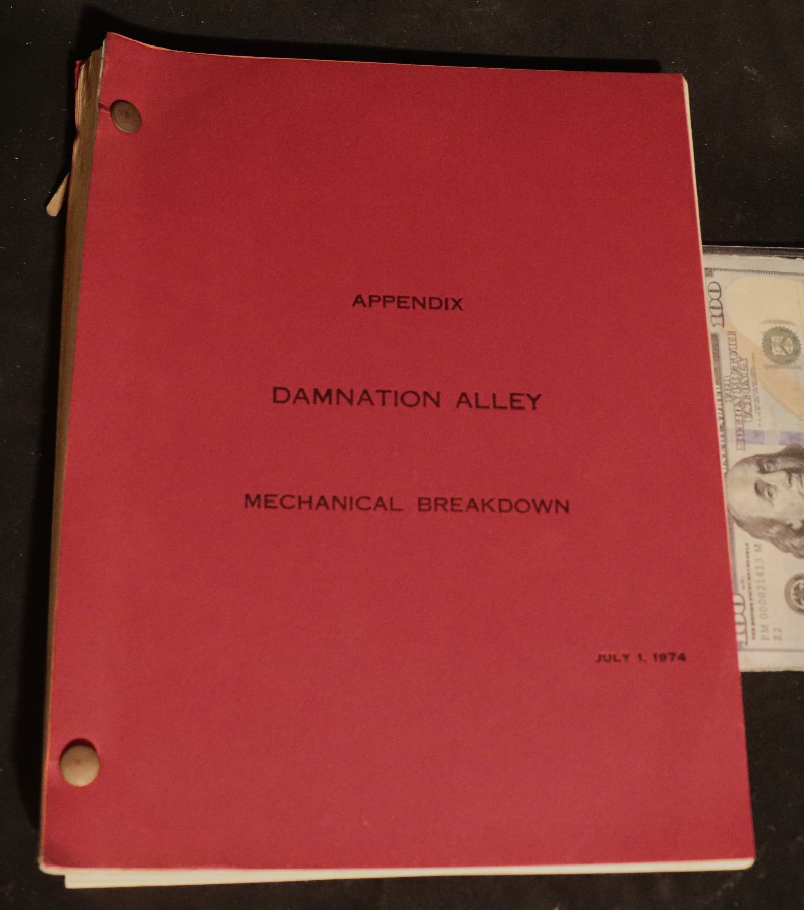 DAMNATION ALLEY ORIGINAL PRODUCTION SCRIPT DATED JULY 1, 1974!