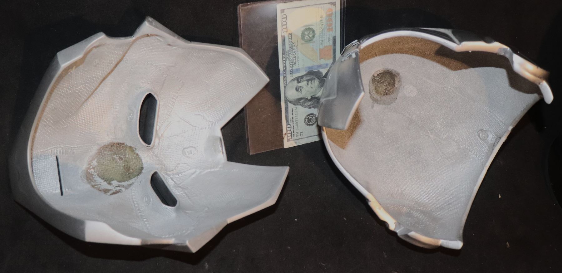 Cast in fiberglass with a thin resin skin for detail. Fits together over the head with magnets. This is the original actual submission and not some recast! The original mold has been destroyed so this is the only one in existance!