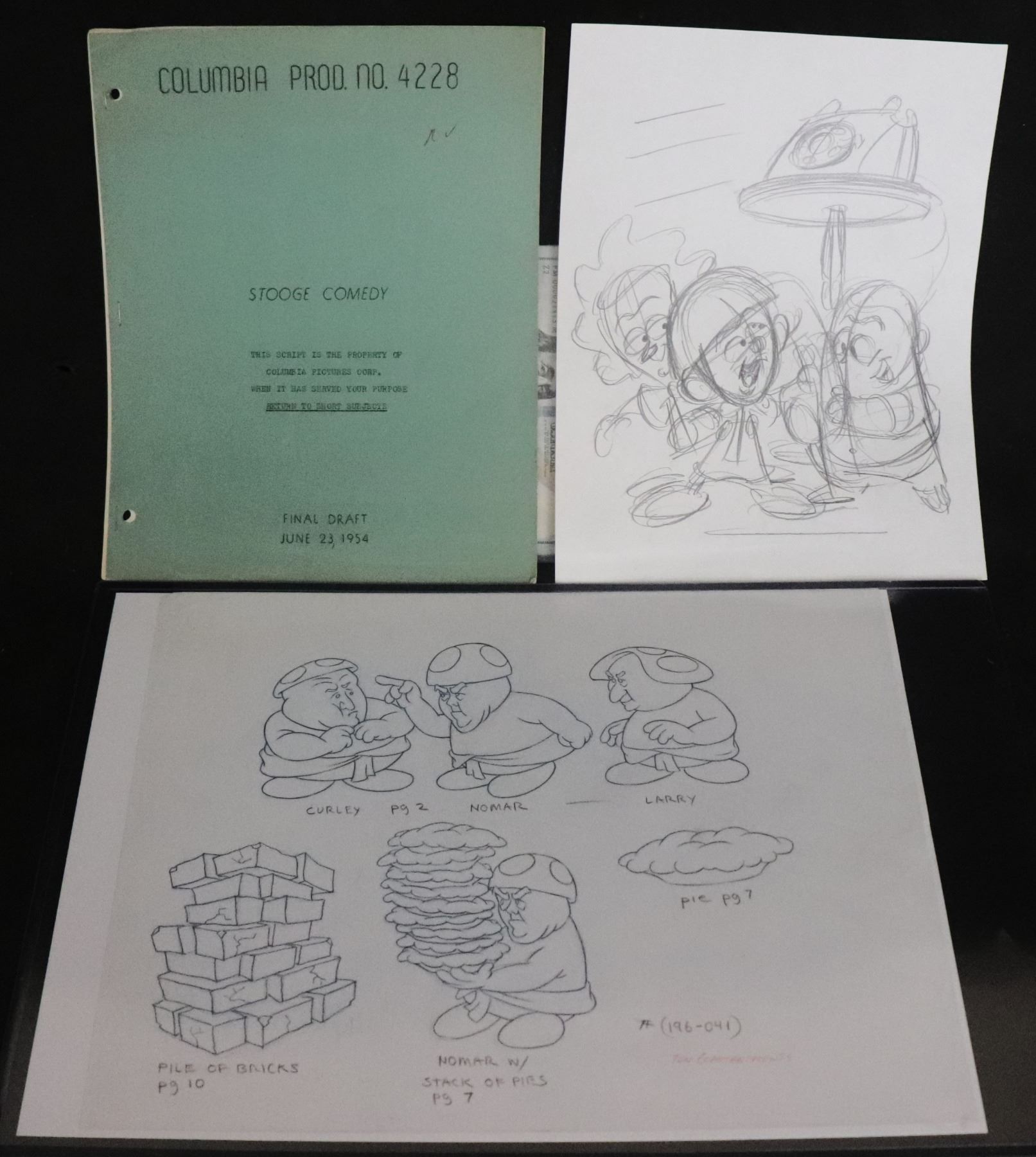 THE 3 STOOGES SHOOTING SCRIPT DATED JUNE 23, 1954 & 80's ANIMATED SERIES CONCEPT DRAWINGS!