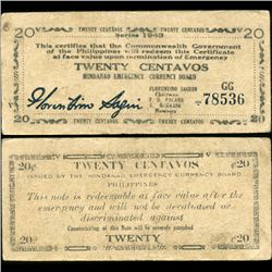 1943 WW2 Guerrilla Rebel Philippines 20c Note Mindanao (CUR-007172)