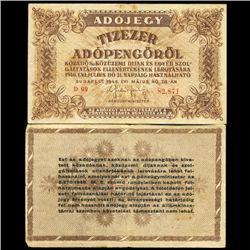 1946 Hungary 10000 Pengo Tax Note Hi Grade Scarce (CUR-005764)