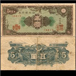 1946 Japan 5 Yen Note Circulated (CUR-006776)