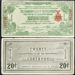 1942 WW2 Guerrilla Rebel Philippines 20c Note Negros (CUR-007177)