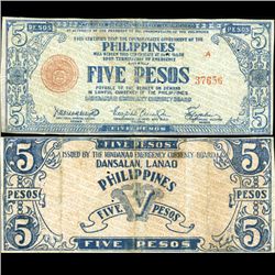 1942 WW2 Guerrilla Rebel Philippines 5P Note Mindinao (CUR-007249)