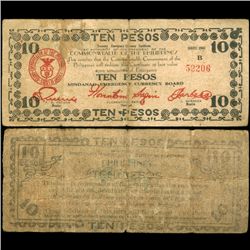 1943 WW2 Guerrilla Rebel Philippines 10P Note Mindinao (CUR-007279)