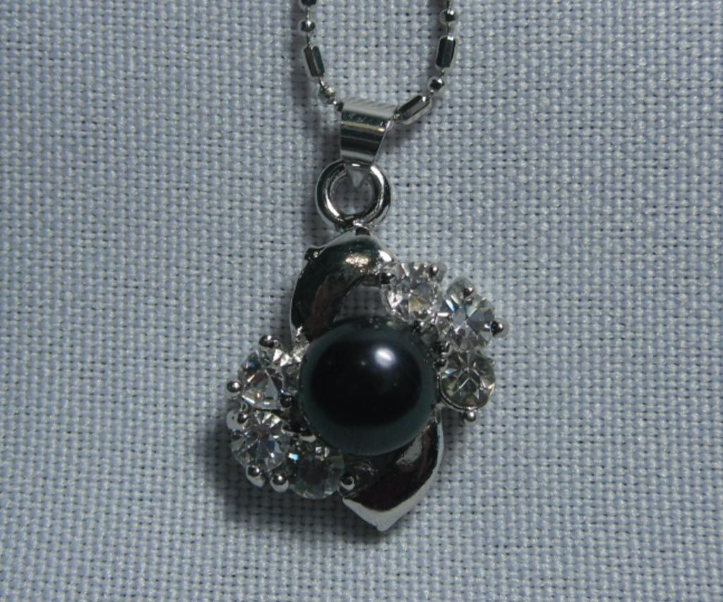 NOBLE BLACK PEARL CZ NECKLACE; **|**|** NOBLE BLACK PEARL CZ NECKLACE; ; MSRP: $300