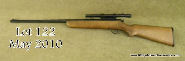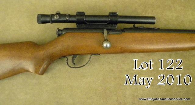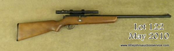 NOBLE Model 20G, NSNV, .22 S-L-LR, 22" barrel, blued finish with hardwood stock. Rifle is in good to very good condition, showing light scratches in the bluing, bore is very good, stock appears to be refinished or retouched. Mountedwith a Weaver model 330 scope. Est. $75-$150.